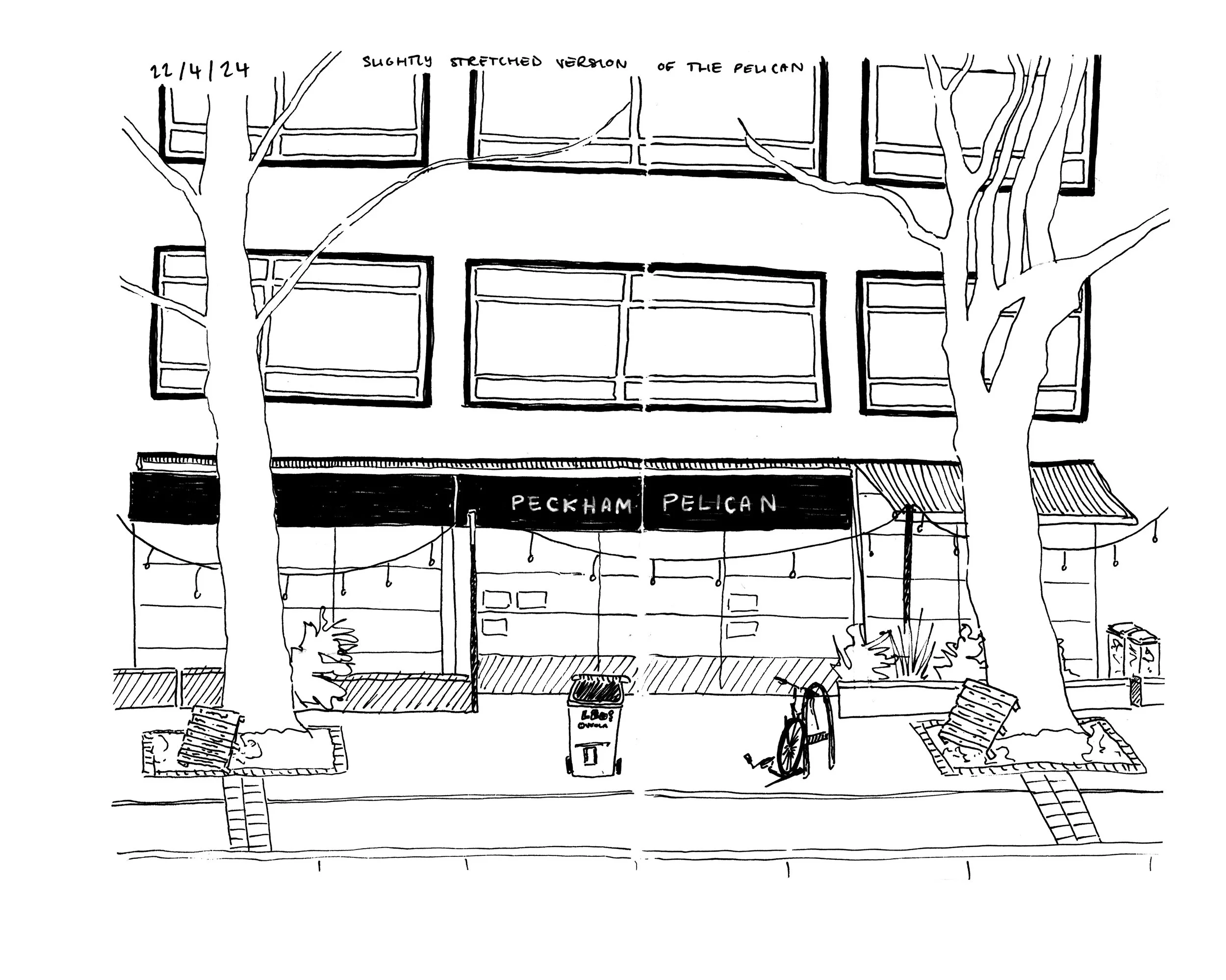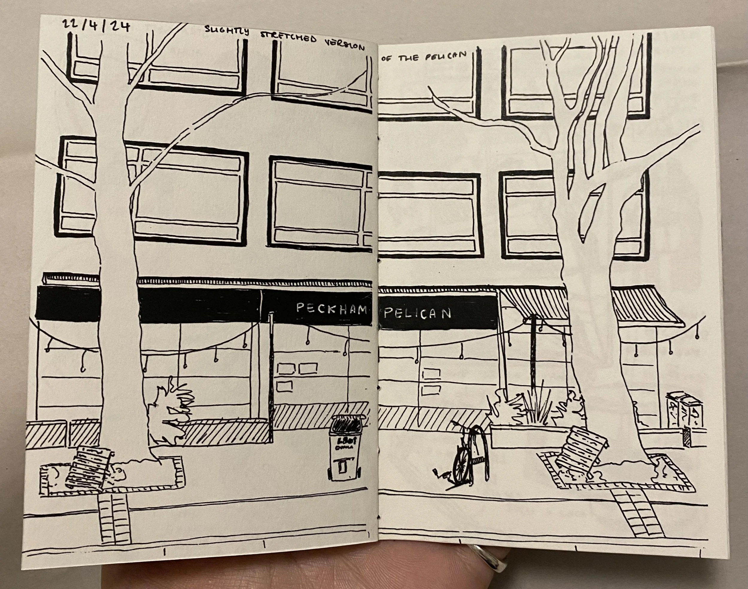 “A Seat At The Peckham Pelican” - sketchbook publication 105x148.5mm, table installation